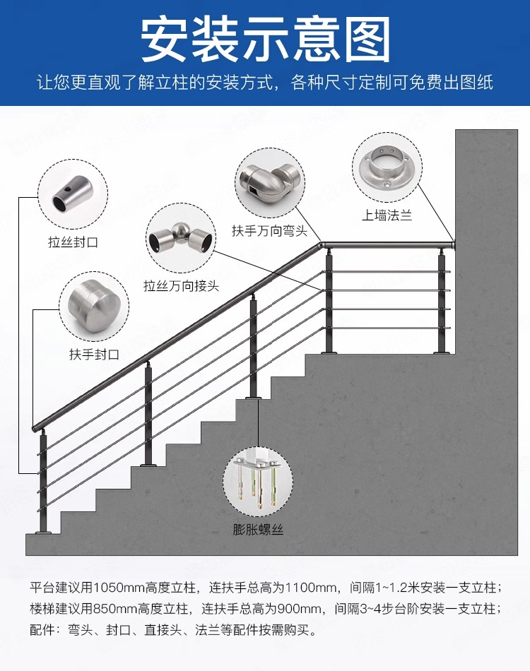 欄桿高度(一般在 900mm-1200mm之間,具體規格可按用途設定)