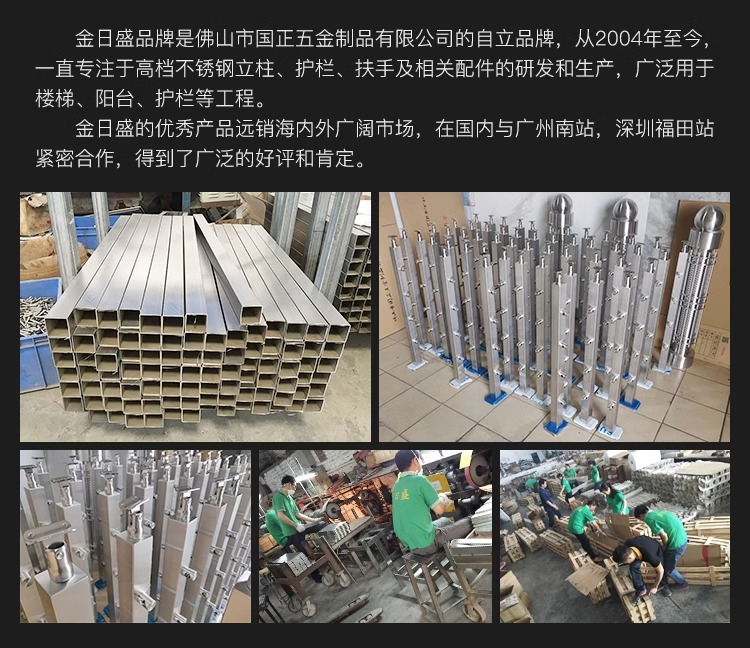公司設立:裁切車間,焊接車間,零配件生產車間,組裝車間,為建筑工程商,提供一站式 不銹鋼護欄以及不銹鋼配件供應