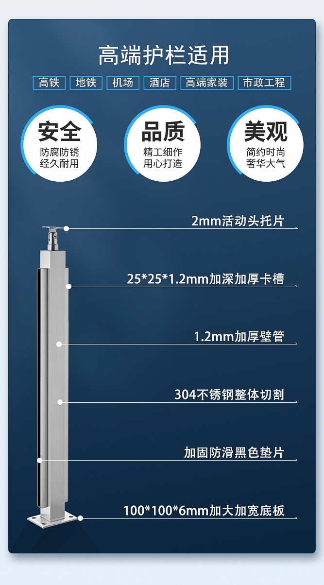 欄桿高度(一般在 900mm-1200mm之間,具體規格可按用途設定)