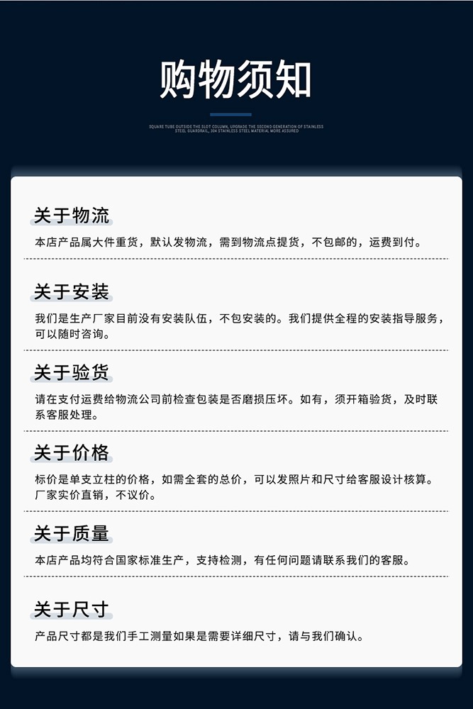 公司設立:裁切車間,焊接車間,零配件生產車間,組裝車間,為建筑工程商,提供一站式 不銹鋼護欄以及不銹鋼配件供應